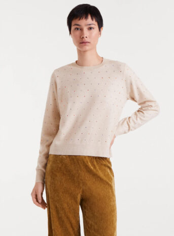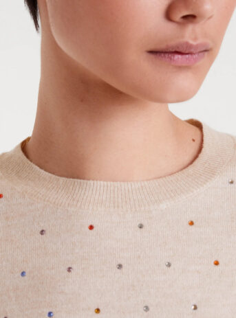 JERSEY PUNTO FINO BEIGE CON DETALLE MULTICOLOR