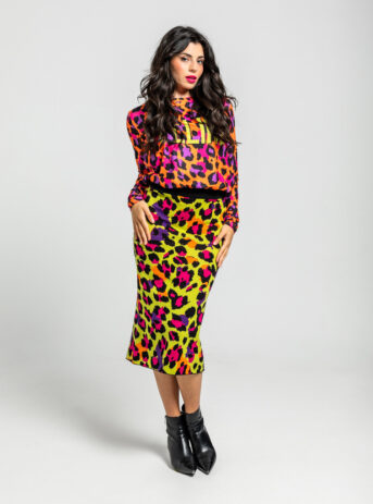 Falda Punto Tejido de estampado animal verde – I’m Felina