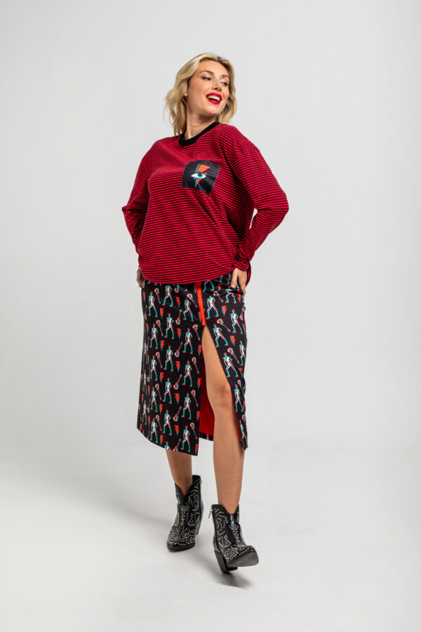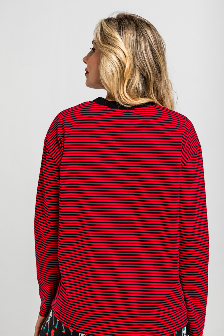 Camiseta Oversize de raya roja y negra con rayo y ojo – Let’