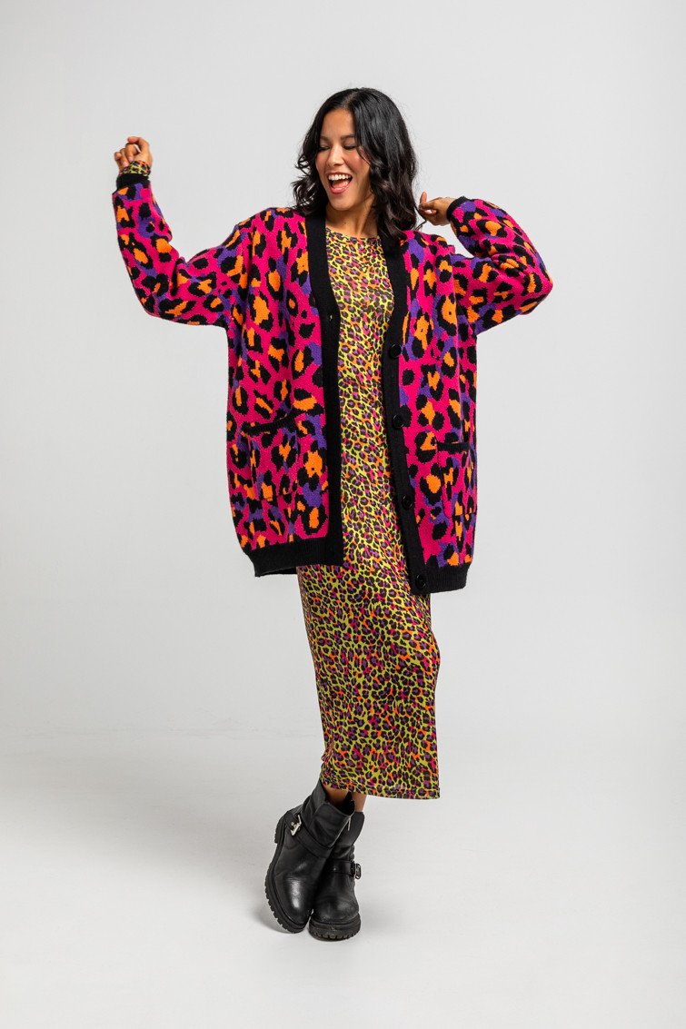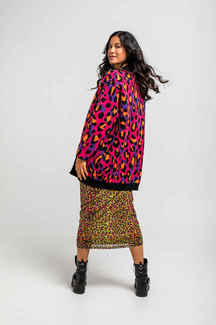 Cárdigan Large de estampado animal fuscia – I’m Felina