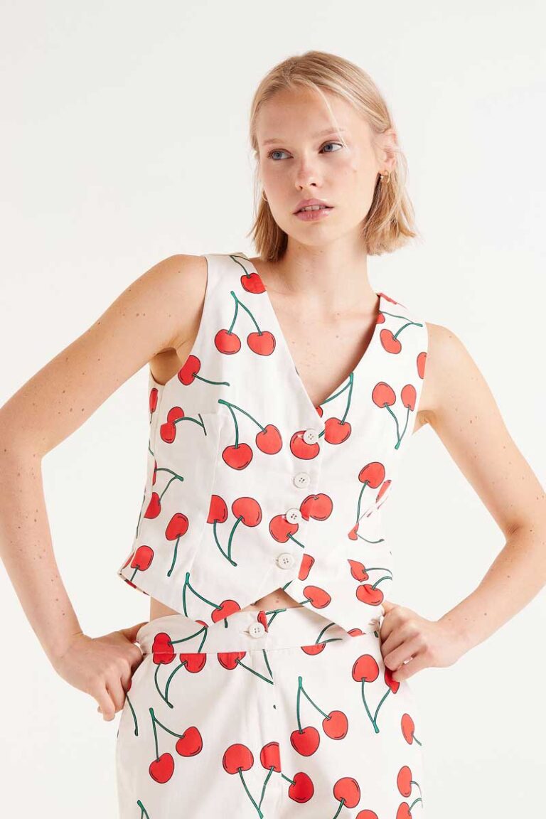 CHALECO SATRE ESTAMPADO CEREZAS