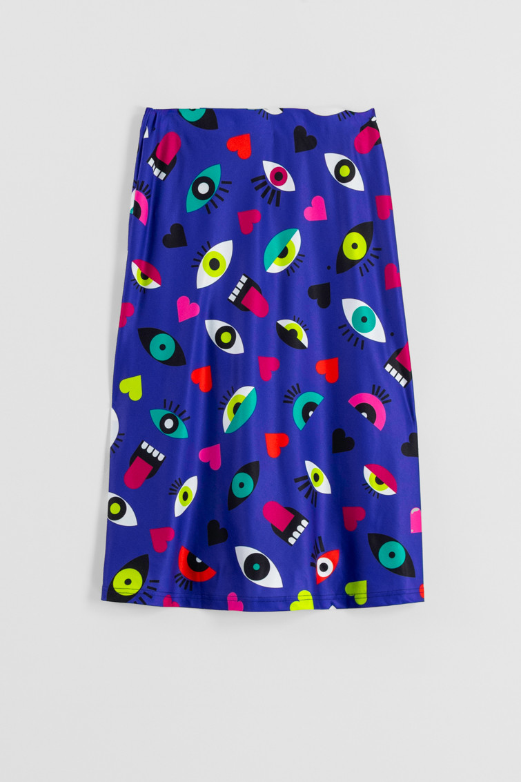 Falda evasé midi de ojos, corazones y bocas – Love yourself