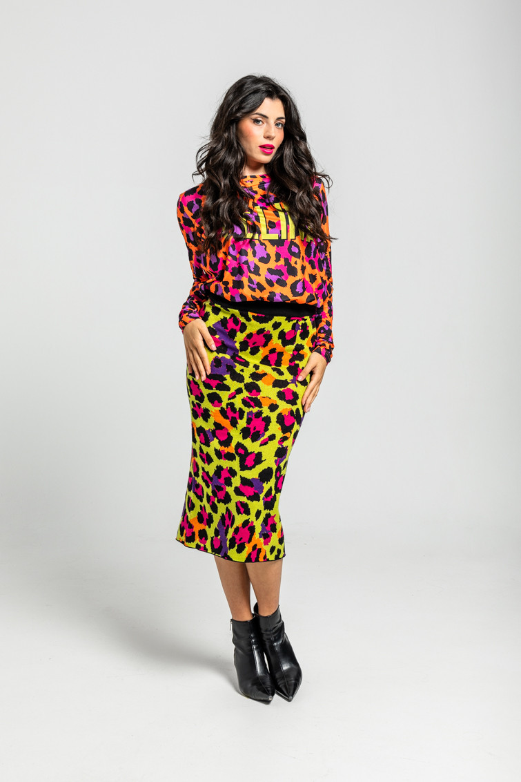 Falda Punto Tejido de estampado animal verde – I’m Felina