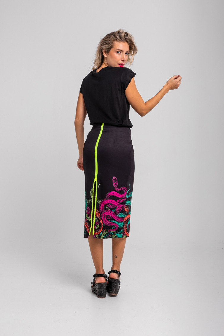 Falda tubo cremallera espalda negra y serpientes – Veneno