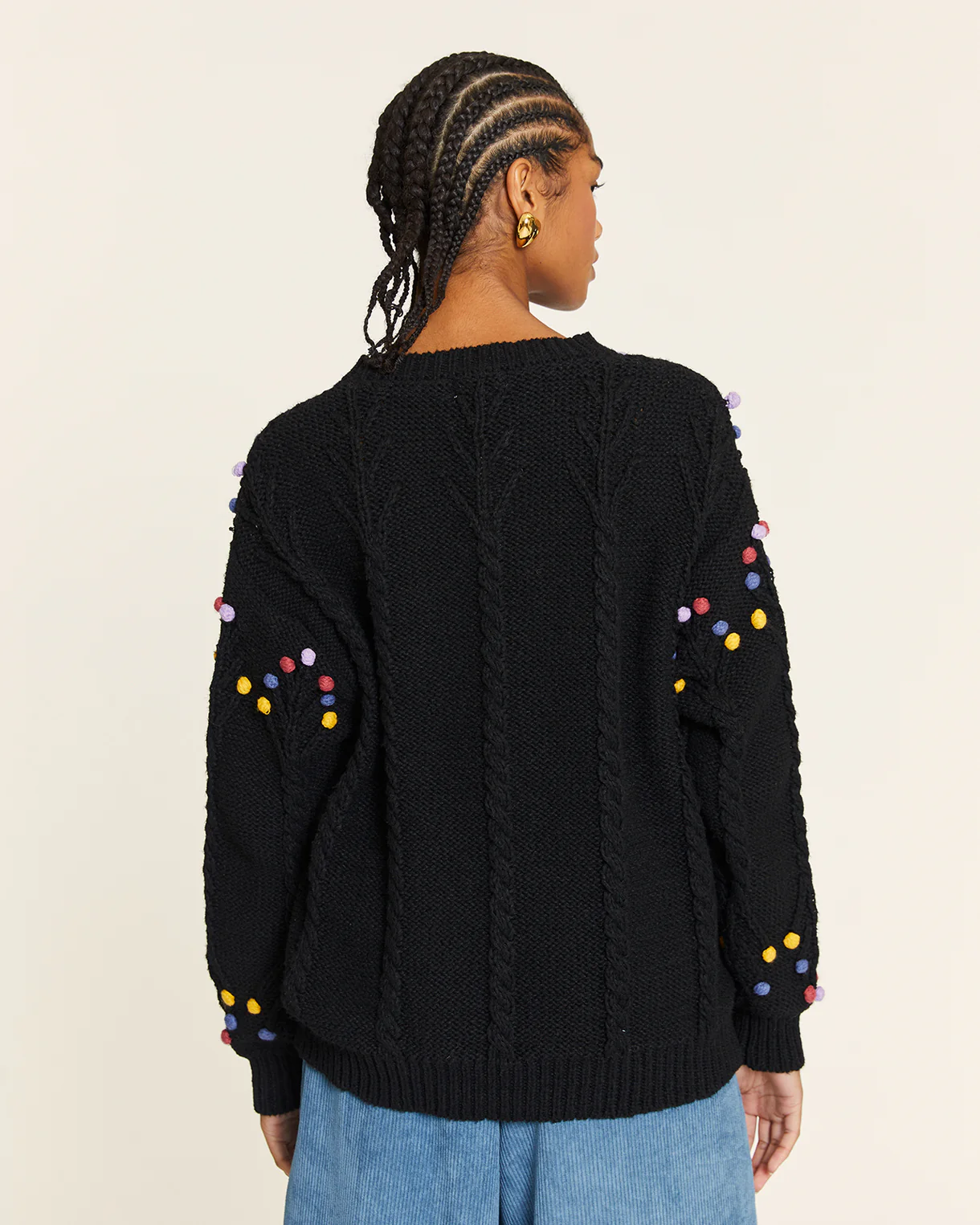 JERSEY POMPOM CON TRENZADO NEGRO