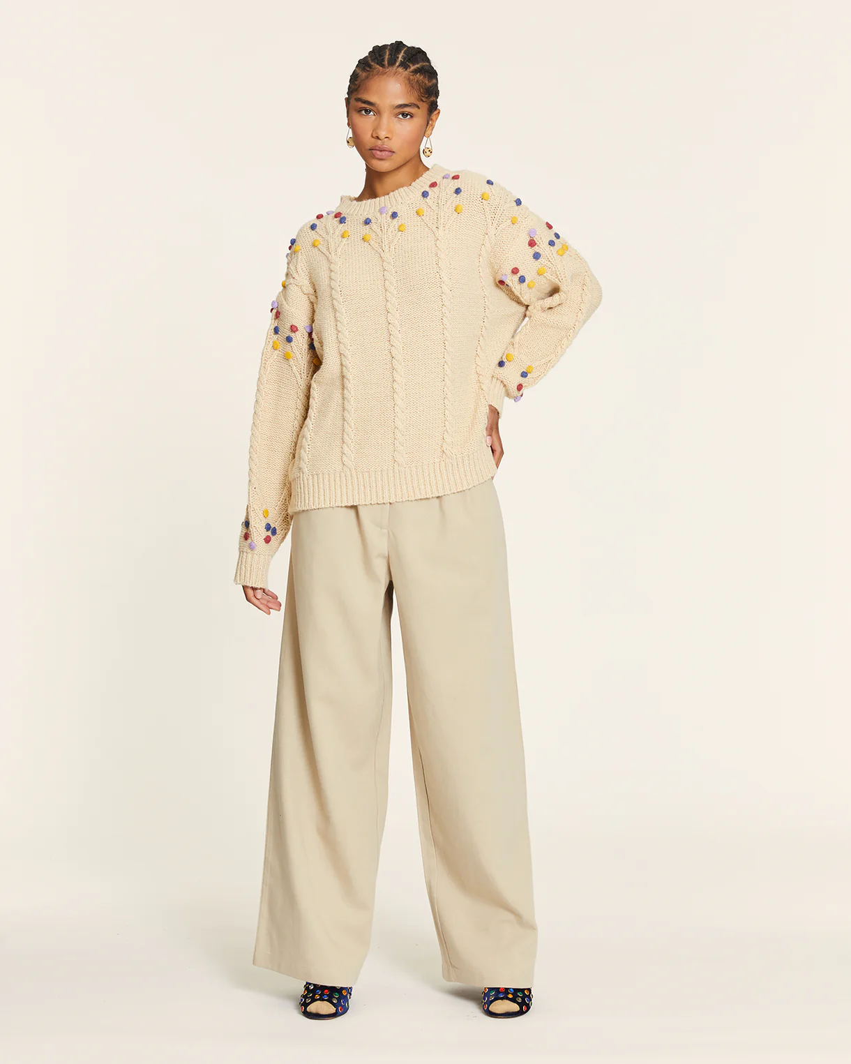 JERSEY POMPOM CON TRENZADOS CREAM cantidad