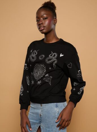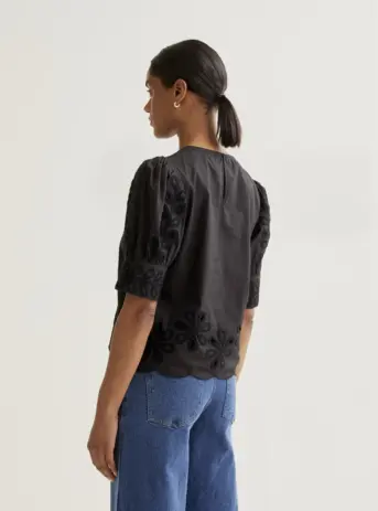 TOP NEGRO CON BORDADO Y BROCADO WILD PONY