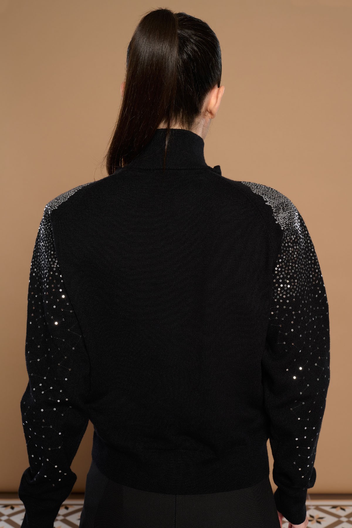 JERSEY DE PUNTO JACQUARD CON ESTAMPADO BIG NAVY BLUE FLOWER
