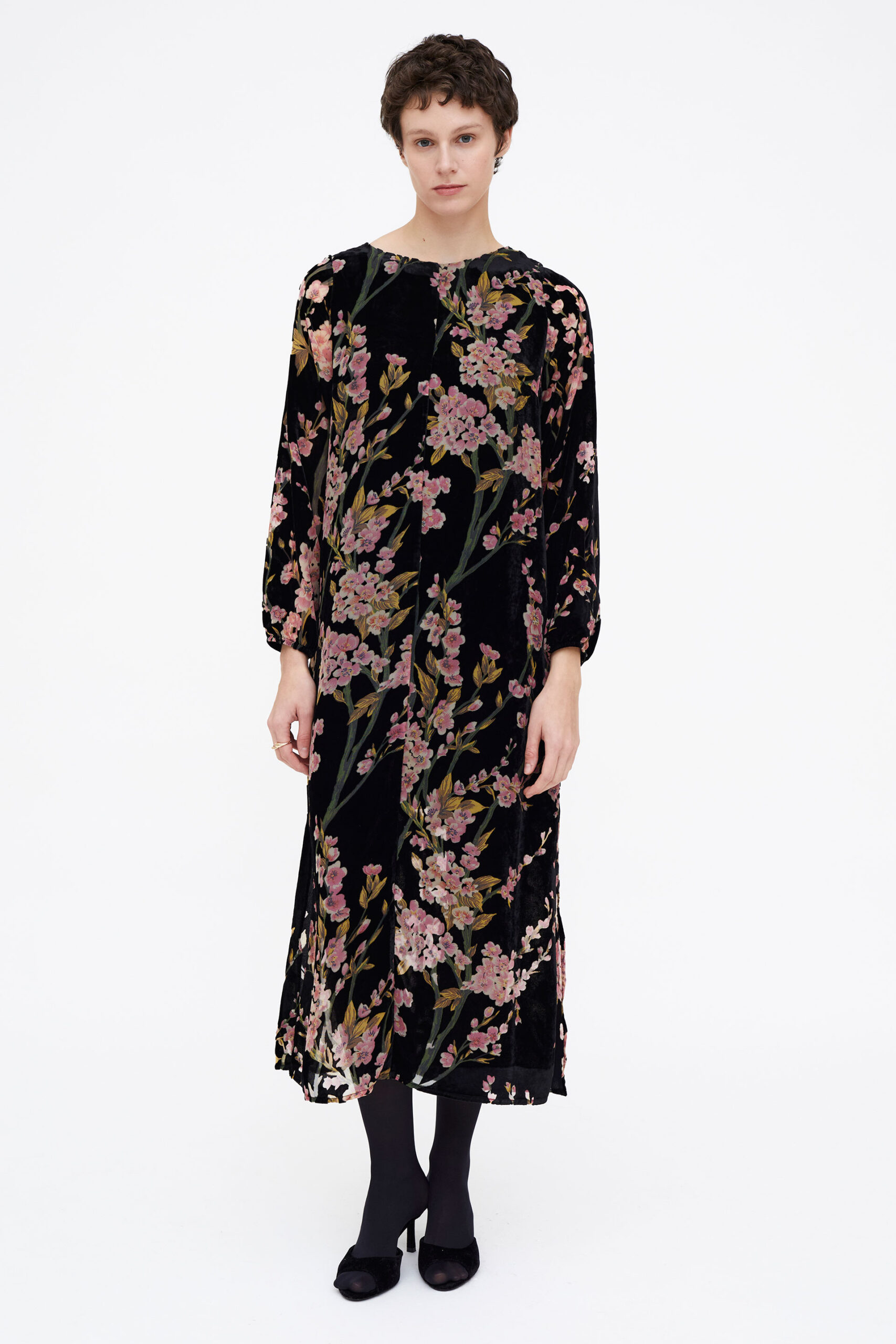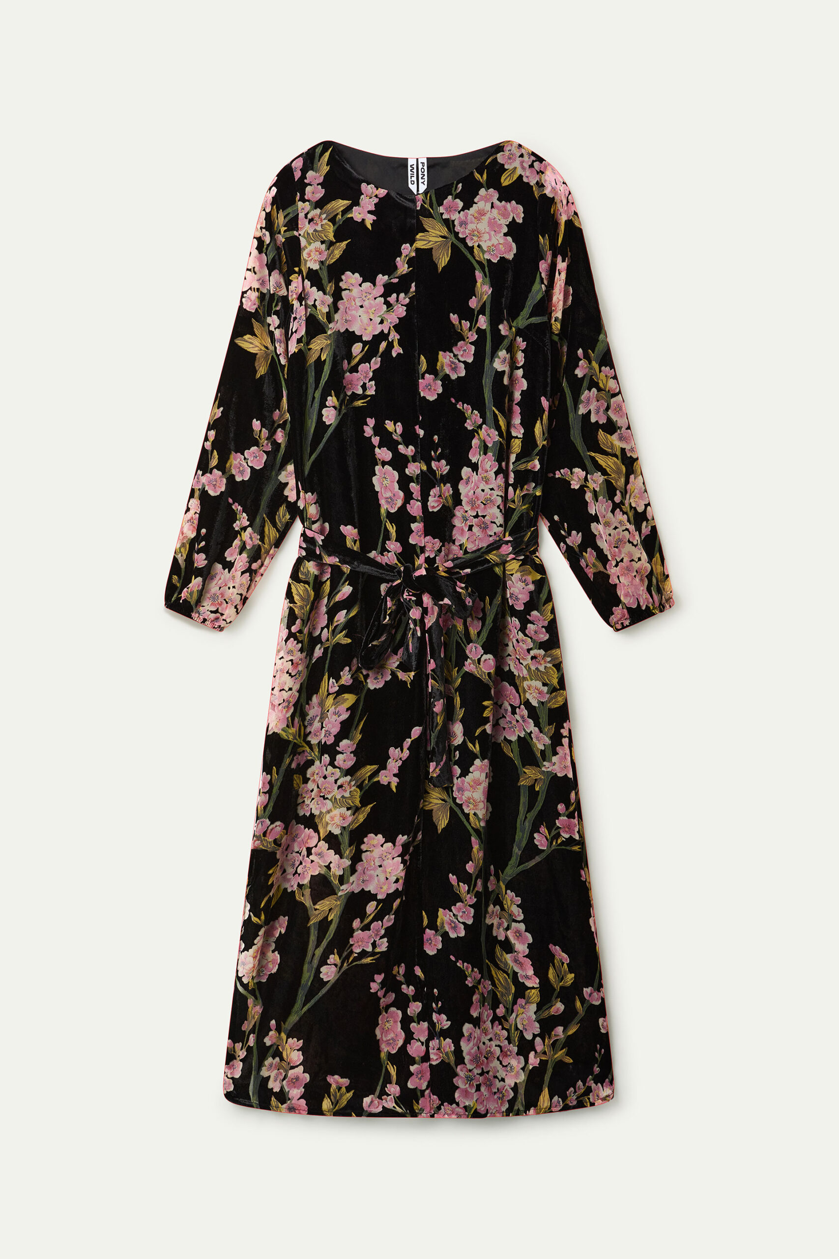 VESTIDO LARGO DE TERCIOPELO CON ESTAMPADO MALVA VELVET