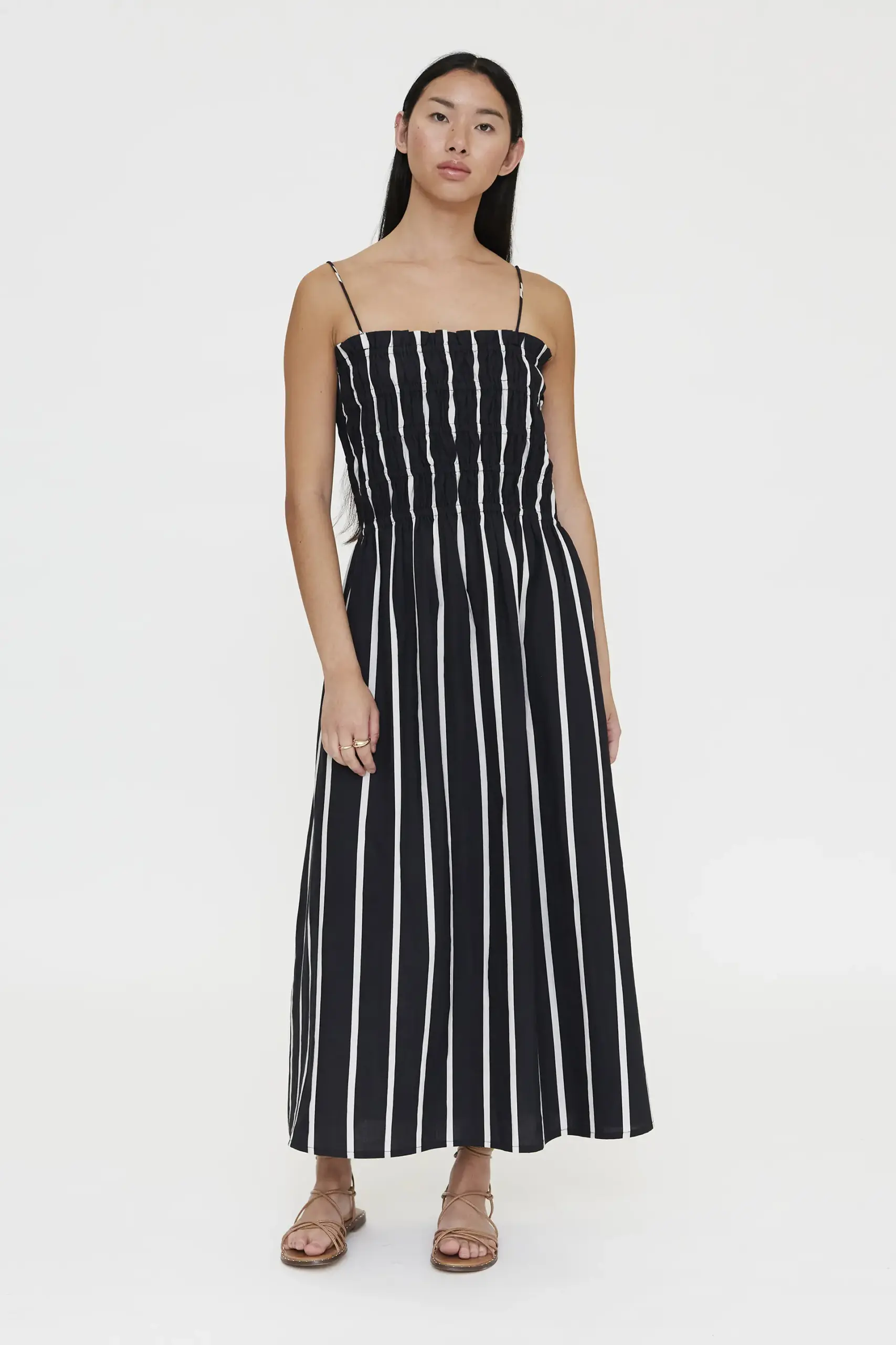 VESTIDO RAYAS DE TIRANTES BLANCO Y NEGRO